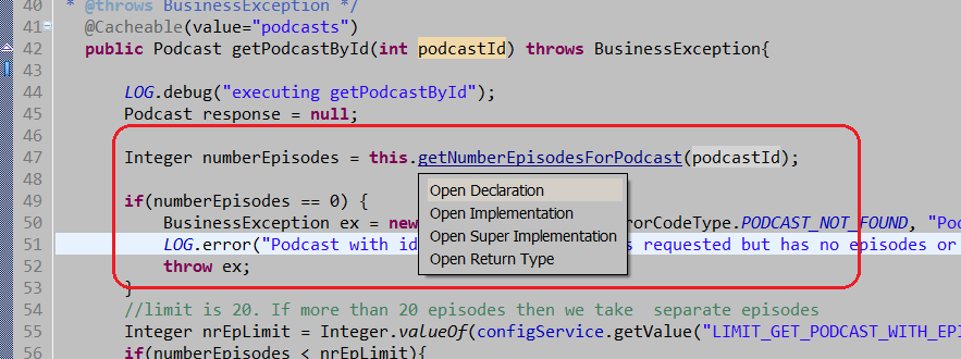 For example I know I have a select identifier in the MyBatis mapper (.xml file) called getPodcastById. The faster way to navigate to it is to search it in .xml files, instead of clicking myself through the Package Explorer view: